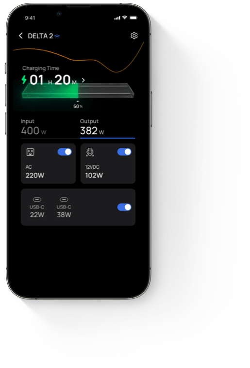 Kontrolējiet un uzraugiet savu EcoFlow pārnēsājamo spēkstaciju un piekļūstiet reāllaika enerģijas patēriņam no vienas ērtas lietotnes, kas pieejama iOS un Android ierīcēm.