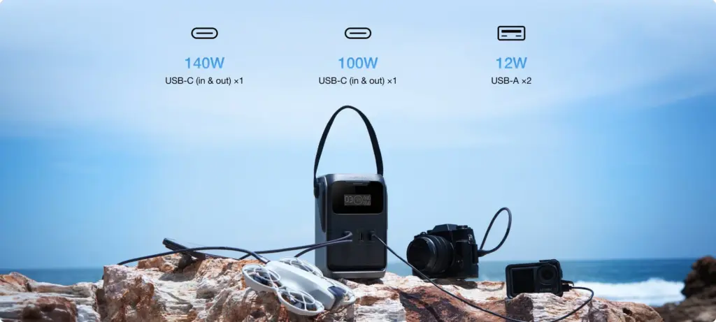 Tīra līdzstrāvas jauda 220 W (140 W max vienā portā) — piemērota vairāk nekā 90% pamata kempinga ierīcēm. Ideāli vieglam kempinga aprīkojumam.